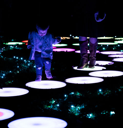 Interactive lights providing fun for all ages: see saws, a musictree, interactive floor lights, touch-changing lanterns